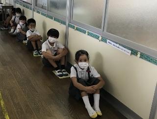 7月20日(月) 延期していた地震・津波の避難訓練を行いました。本来なら遠足の時、山の上公園への避難経路を確認して、早い時期に訓練を行うようにしていましたが、この時期になってしまいました。暑さも考え1時間目終了後、時間を確保して行いました。子供達は、暑さに負けず頑張っていました。