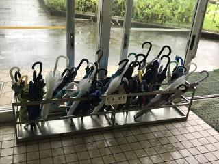 7月27日(月) 今朝は登校前に雨がひどく、登校時も少し雨が降る天気でした。その後、校舎を回っていると傘立ての様子が目に入ってきました。いくつか開いたままの傘や方向がずれている傘がありましたが、6学年とも割ときれいに並べることができていました。ちょっと感心したところです。
