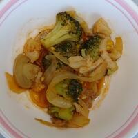 メニュー:〇麦ごはん 〇タンドリーチキン(除去食:ヨーグルト抜き) 〇和風ポトフ 〇リンゴ 〇牛乳