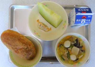 メニュー:〇揚げパン 〇タイピーエン 〇餃子 〇メロン 〇牛乳