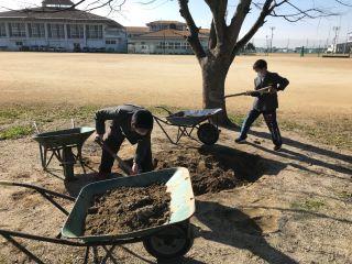 2月10日(水) 6年生が総合的な学習の時間で感謝プロジェクトに取り組んでいます。その一つに学校への感謝を表すグループがあります。自分たちで考えた取組もあるのですが、私から一つお願いをしました。それは、ブランコの下に砂を入れることです。なぜかという雨上がりに水がたまり、子供達が遊べなかったり泥まみれになってしまうからです。今日、活動に取り組んでくれました。みんなありがとう。