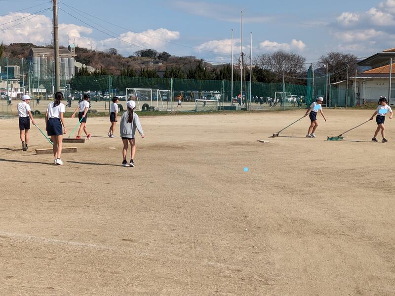 昼休み、野球を楽しんだ後は、グラウンド整理をみんなでします。