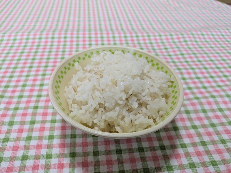 韓国風炒り鶏は、韓国の甘辛い発酵調味料のコチュジャンを使って醤油ベースの味付けで、鶏肉に豆や里芋、人参、ごぼうを炒って作られていました。鶏肉の柔らかさと具材にしみ込んだ味が、炊き立てのおいしい麦ご飯にとても合っていて、ご飯にのせて食べるとおいしさがさらに増しました。