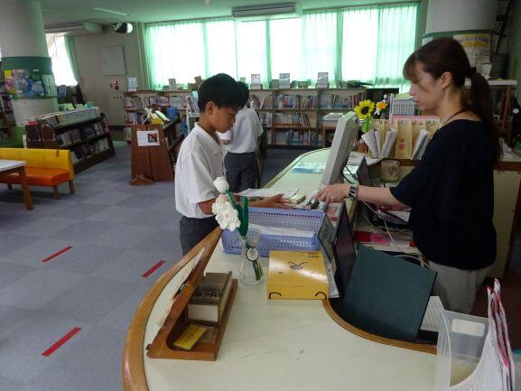 図書室では夏休みの間に借りていた本を返す子でごった返していました。たくさんの本との出会いがあったようで、読んだ本を紹介してくれる子もいました。