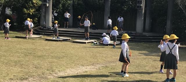 11月4日(月) 業間のグリーンステージです。縄跳びの練習に一生懸命取り組んでいました。