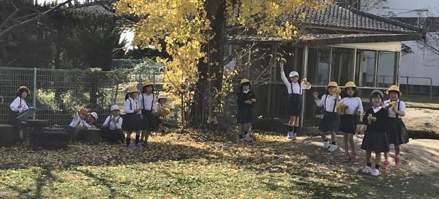 12月5日(木) 昼休みの様子です。縄跳びの練習に励む低学年の子供達が大勢います。また、3年生中心に銀杏の葉っぱを使ったすみか作りをしている子供達もいました。