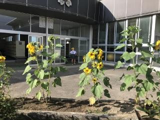 12月24日(火) 季節外れのひまわりが、咲いています。つぼみのものも3本残っています。背の高さが2m程になっています。