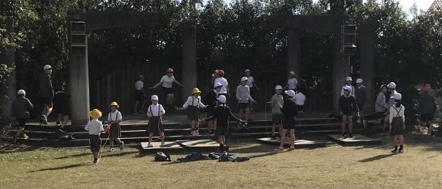 12月13日(金) グリーンステージでは、長縄をする子供達の人数が増えています。複数の学年の子供達が一緒にしています。縄跳びをしている子どももいます。もう一枚は、ステージ裏を掃除してきれいにしてくれている子供達です。自主的な活動です。