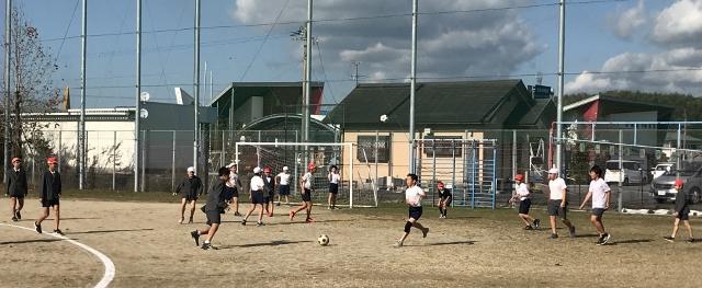 11月29日(金) 昼休みの様子です。なわとび、落ち葉拾い、サッカーなどみんな楽しそうに遊んでいます。持久走大会へ向けてランニングをしている児童もいました。感心します。銀杏の黄色い葉っぱがとてもきれいです。