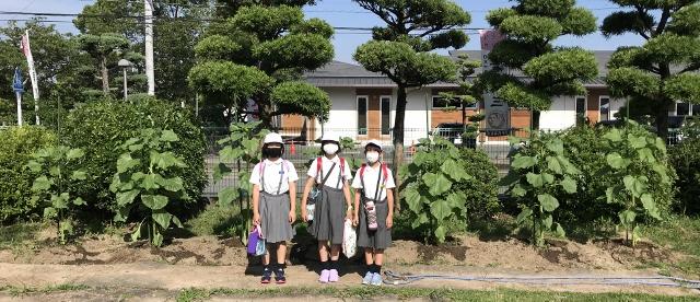 6月25日(木) ひまわりの栽培を理科で3年生が行い、運営委員を中心にひまわりのせいくらべにチャレンジするよう計画していましたが、運営委員が各学級でプロジェクトが計画され、昨年度のように動けないので、新たに3名のメンバーでお世話をすることになりました。