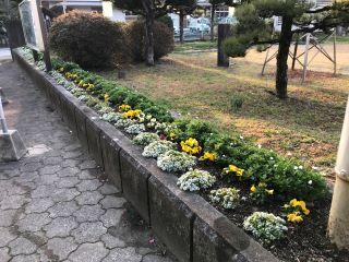 3月10日(水)運動場を見に行くとき、体育館横の花壇の花がとてもきれいでした。