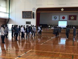 3月5日(金)今日は、送別遠足でした。朝、担当が現地を見に行ったところ、雨の影響で食事はできないだろうということで、日程を少し変更して実施しました。①体育館でレクレーション②津波の避難場所の確認を兼ねて、山の上公園まで遠足③学校に帰ってからお弁当④昼休みを少しとって下校 です。子供達は、少し残念だったかもしれません。レクレーションを担当した運営委員の子供達は、クイズなどで少しは楽しい時間を過ごせました。大変ありがとうございました。