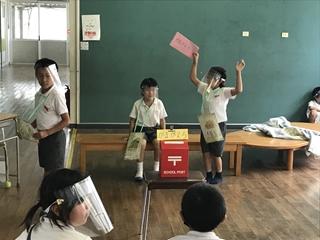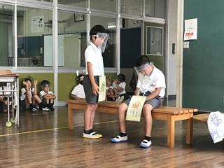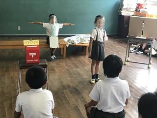 10月8日(木) 5校時に2年生が1年生を招待して、劇の発表会をしました。私と教頭先生と学童の田中先生も招待されました。子供達は、とても意欲的で楽しい発表会となりました。