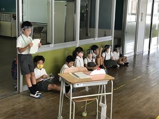 10月9日(金)3校時に、かずちゃん文庫の撮影をしていたら、2年生が本を借りに入ってきました。その様子を撮影して外に出たら、子供たちが上靴の数を数え12人を超えているから外で待っとこうといって待機していました。密を防ぐためだそうです。感心しました。