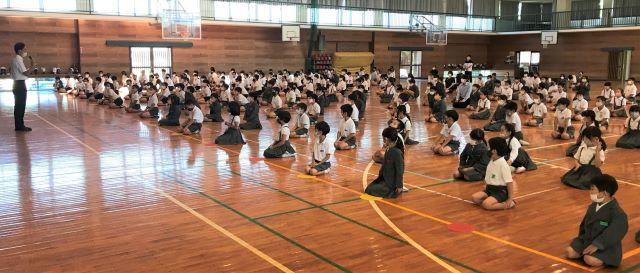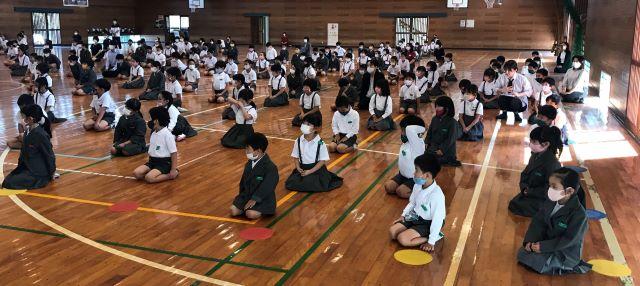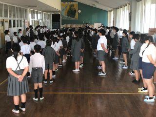 10月9日(金)今日は前期終業式を行いました。まず、先日お伝えした転入者の紹介の後、私から最近の登校時のあいさつや止まってくれた車へのお礼がとてもよくなっていることを伝えました。後期は、各地域へも広がっていってくれると期待しています。