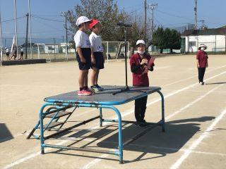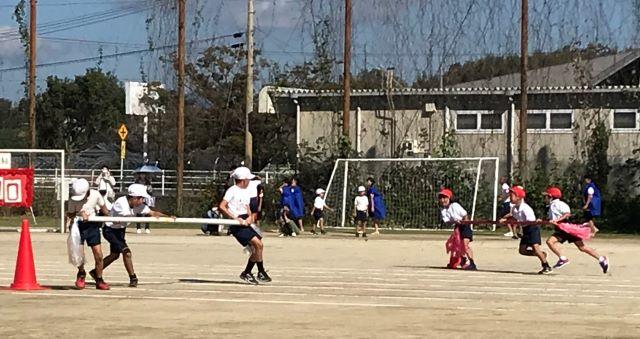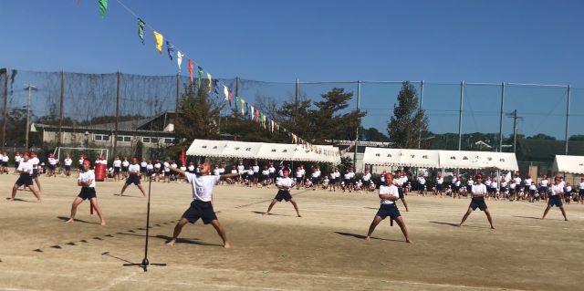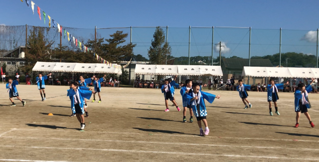 10月25日(日)⑨3・4年団体「台風の目」⑩5・6表現「よさこいソーラン」(動画で)⑪全体「応援合戦」全体応援は動画で⑫代表継走「紅白代表リレー」※解団式