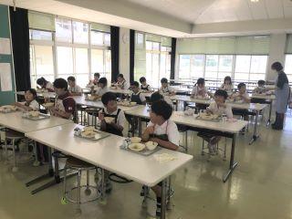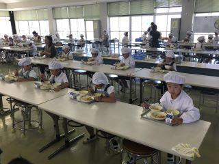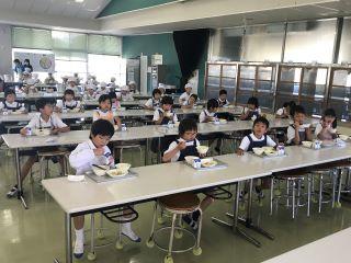 10月15日(木)現在ランチルームでは、コロナ対策で全員ではなく、1年、2年、4年生が食べています。