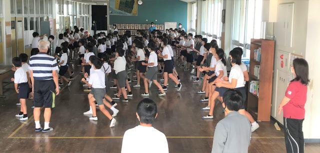 10月13日(火) 始業式の前、体育館に準備をしに行くと、まだ、5・6年生が体育でソーラン節の練習をしていました。真剣さがビシビシ伝わってくるほどの一生懸命な練習が行われていました。写真はその様子です。動画コーナーに今日の様子を30秒間の動画でアップしています。ご覧ください。