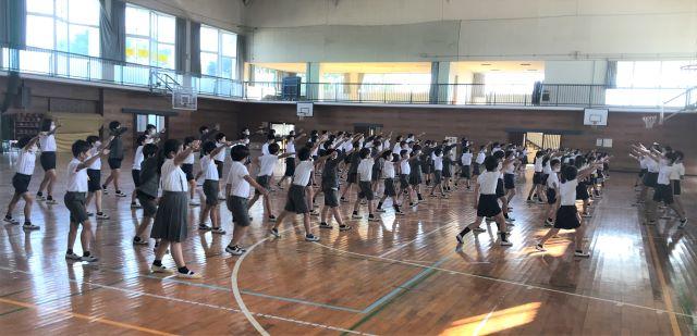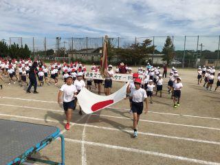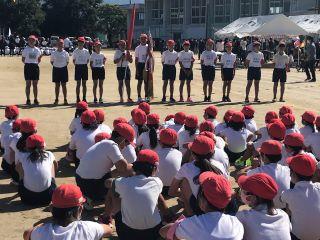 10月14日(水)3校時に全体練習の1回目がありました。今年度は、入場行進の形を変えて行います。今日の練習内容は、開会式で「開式の言葉」「優勝旗返還」「誓いの言葉」等、閉会式で「得点発表」「優勝旗授与」等でした。みんな1回目とは思えないような良い態度で臨んでいました。入場行進の様子を動画コーナーに掲載しました。