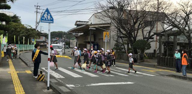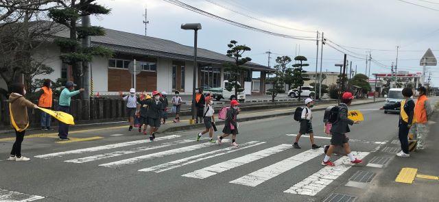 10月19日(月) 今日もいつものように保護者地域の方による登校指導が行われました。皆さんの子供たちを見守る温かいまなざしを感じます。各地域で見守りしていただいている方々も含め、いつもありがとうございます。
