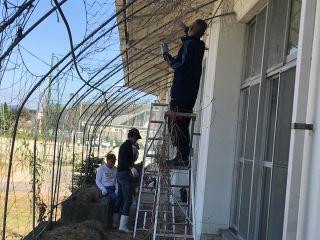 10月15日(木)学校敷地から外に伸びている樹木が、周りに迷惑をかけていたので、樹木剪定をしました。大きな枝もあり、結構大変でした。放課後数名の先生が片づけを手伝ってくださいました。同じ時間帯に運動会練習用のラインを引いてくれていた先生方が、終わって談笑しているところを一枚撮っています。