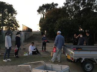 10月25日(日)朝6時(少し早かったような!)に爆竹を上げました。今朝は、薄暗い中、冷え込んでいてみんな寒い寒いと言いながらでした。PTA会長さんと副会長さんにも来ていただいてました。