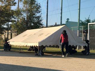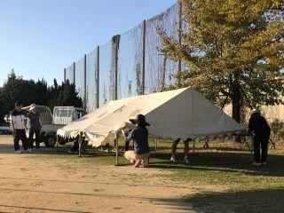 10月20日(火)同じく放課後、職員は8つのテント立て、PTAの皆さんには、ゴミ捨て場の整地と大量の樹木を短く切ってからの運搬をしていただきました。大変な作業でした。トラックや軽トラを出していただき、大変きれいになりました。ありがとうございました。