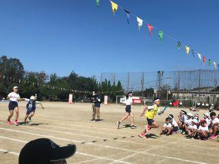 10月21日(水) 昼休み強い日差しで汗ばむ中、多くの子供たちが屋外で過ごしていました。紅白代表リレーの練習もあっていました。カナヘビを捕獲したりドングリを拾って見せに来た子供たちが大勢いました。