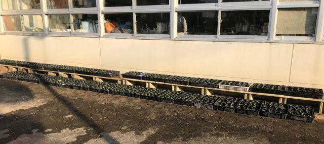 10月29日(木)5年生が総合的な学習の時間で取り組むプロジェクトに使用する花苗です。ノースポールやアリッサム、ナデシコ、ビオラ、リビングストーンデイジー等です。教頭先生の指導で、5年生の子供達と栽培委員会の子供たちが植えました。下段の写真は、季節外れのヒマワリの苗です。こぼれだねが発芽して大きくなっています。