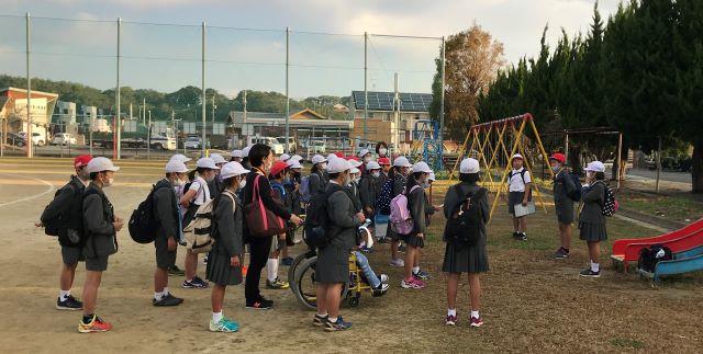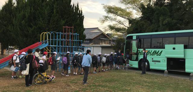 10月30日(金) 今日は、4年生の見学旅行です。朝の出発式の様子です。バスの運転手さんにもしっかりお世話になることを伝えていました。