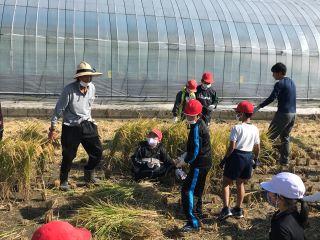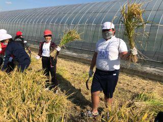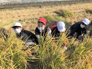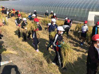 10月31日(土) 30日(金)5校時に5年生が稲刈りを行いました。町づくり委員会の前川様や4Hクラブの若き農業者の皆様の協力をいただきました。学校運営協議会の学校サポート活動の一つでもあります。子供達は、貴重な体験をすることができました。今年度は、コロナの影響で餅つきをやめ、餅米の販売の取組みやその益金で地域貢献を進めて行く予定だそうです。どんな活動になっていくのか楽しみです。