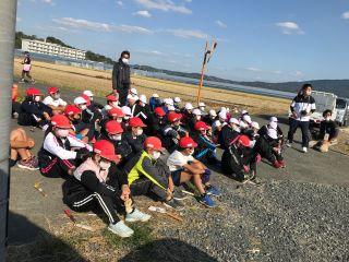 10月20日(火) 今日は、午前中に町づくり委員会の皆様を中心に学びの森の整備をしていただきました。現在は、町づくり委員会と文化財保存顕彰会、潟担い節保存会の皆様が一つになって活動されていると聞いています。この整備の後は、文化財保存顕彰会の皆様は、集まりがあるということで途中で離れられました。学びの森が終わった後に、ランチルーム横のネットに絡みついた朝顔のつるも取っていただきました。大変ありがとうございました。最後の集合写真には、文化財保存顕彰会の皆様は写っていません。
