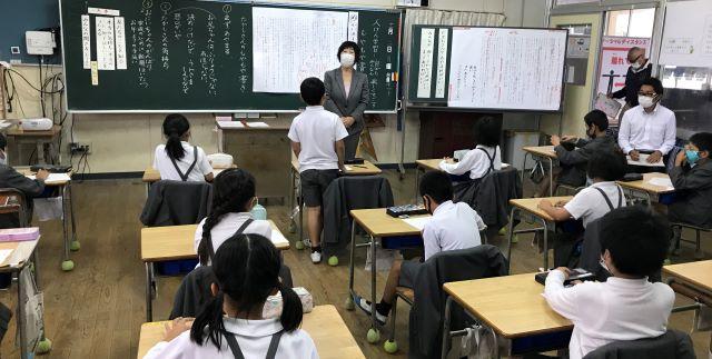 11月5日(木)2校時、玉名教育事務所より宮本指導主事が初任者訪問に来られました。5年1組の算数の授業を見ていただきました。先生と子供たちが真剣に授業に臨んでいました。