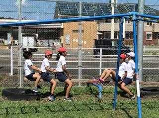 10月1日(木)今日も大勢の子供たちが、屋外で遊んでいました。ブランコでは、6年生の女の子たちが、パフォーマンスを見てほしいと演じてくれました。せりふもありましたが、動画ではなく写真での紹介です。他は、走り回っているので撮影不可能なので、ちょっと集まってもらって撮った写真もあります。