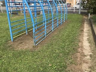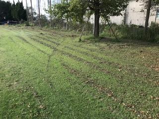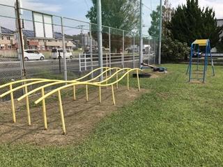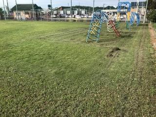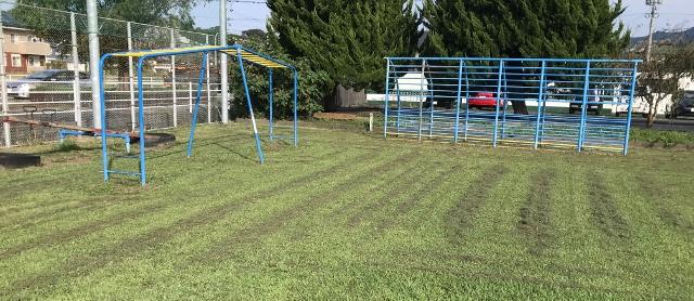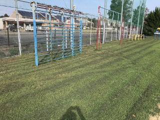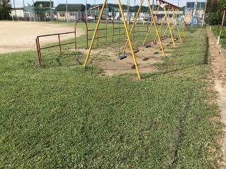 10月4日(日) 2日(金)の放課後、遊具やフェンス、タイヤ周辺部を整備しました。芝刈り機での作業が楽なのですが、このような場所は、刈ることができません。そこで、草刈り機の出番なのです。来週前半で仕上げをし綺麗にしたいと思います。
