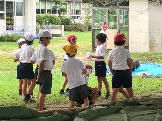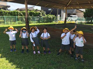 9月14日(月) 子供達の多くは、どんなに暑くても屋外で遊んでいます。バッタを捕まえて見せてくれた子もいました。今日は、教室で過ごしている写真も一枚入れています。