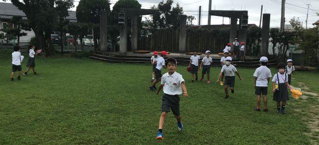 10月1日(木) コンパスゲームの様子です。自然の中の活動で気持ちよさそうです。