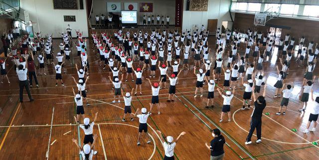 9月25日(金)5校時9月集会を行いました。私から登校指導の時のあいさつと止まってくれた車へのお礼が上手になったことを伝え、新たな目標の達成をお願いしました。そして、生徒指導より10月目標とコロナ感染対策、あいさつ名人の紹介がありました。その後、運営委員から運動会のメッセージ発表と体育委員会からラジオ体操の指導を行いました。運営員会と体育委員会のみんなは、事前の準備がしっかりできており素晴らしい進行と発表でした。最後に応援団長になった二人が運動会へかける思いを発表して終わりました。