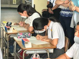 10月8日(木) 朝自習の時間を使って応援団の練習をしています。赤組、白組の練習の様子です。