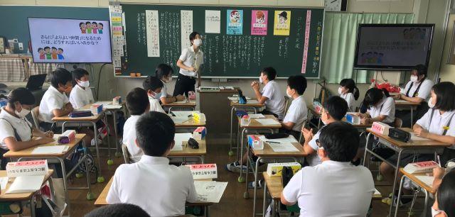 9月28日(月) 5校時、6年2組が道徳:主題名ほんとうの友だち(友情・信頼)題材名「ロレンゾの友達」の研究授業を行いました。授業では、導入がアンケートや学級目標を活用し、学級の問題につなげる工夫がしてありました。書く活動が多かったのですが、全員がしっかりと書くことができており、書く力が育っているのを感じました。子供たちの真剣な学びを感じられる授業でした。