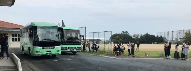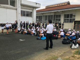 9月30日(水)7時40分に大勢の保護者に見守られながら、全員元気に出発しました。出発式の様子をお知らせします。