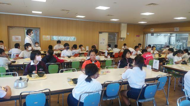 10月6日(火) 今日、2年生にベトナムからの転入生が仲間入りしました。笑顔のかわいい女の子です。子供たちは、数日前からとても楽しみに待っていました。玄関でのお出迎えに大勢集まり大歓迎をしてくれました。教室でもみんなしっかりお世話をしてくれていました。お母さんもみんなが優しかったので安心しましたと言ってくださいました。写真は、ランチルームでの様子です。少し緊張気味でした。