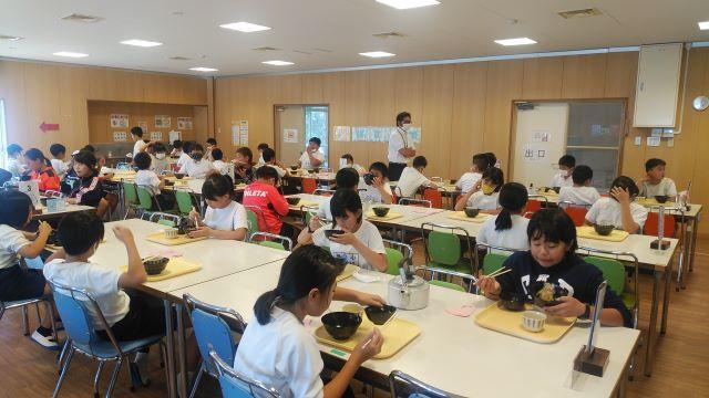 10月7日(水)2校時授業を見て回った時の様子を2つ紹介します。一つは、3年2組の理科「スライムを作ろう」の発展学習の様子と1・2年生合同体育「むつごろうどん」の練習の様子です。発展学習では、意欲的な姿が見られました。また、1・2年生の合同体育は、2年生から1年生に技術を伝える形で行われていました。