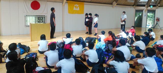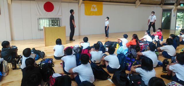 10月1日(木)3時20分より解散式でした。各係になっている子供たちが、役割を果たして進行していきました。教頭先生や担任の先生からもよい行動ができたと褒められていました。少年自然の家の所員の方からも褒められたということです。みんなの日ごろの取組の成果が出たのだと思います。大変お疲れさまでした。