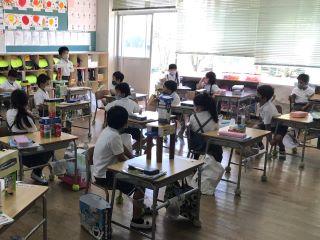 9月17日(木) 午前中授業を見回ったときの授業の様子を2例紹介します。1つは、5年生外国語での会話の場面です。もう一つは、4年生理科の水の行方の実験の様子です。