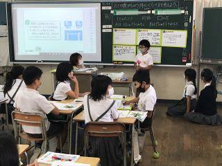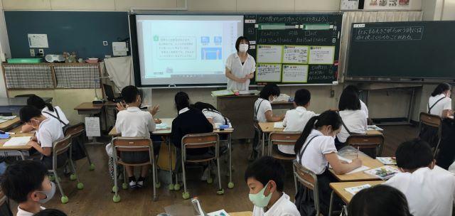 10月5日(月)5校時4年生算数「倍の見方」の研究授業を行いました。子供たちは、「もとの数がちがうときの比べ方を考えよう」のめあてで学習を進めていきました。見通しを持ち、自分の考えをもつ時間のあと、グループで話し合い考えを練り上げていきました。最後の適用問題では、ほとんどの子供たちが解くことができていました。