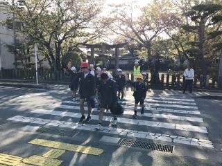 4月12日(金) 今日の朝の様子です。班登校の様子と横断歩道を渡っている様子、1年生が教室に道具を置いて、遊びに出かけている様子、ボランティアで1年生のボックスの整理をしてくれている子供たちです。