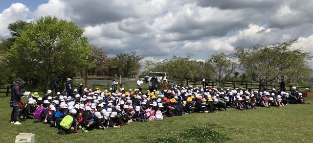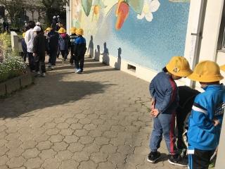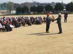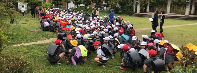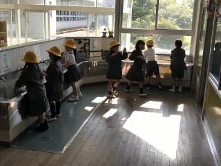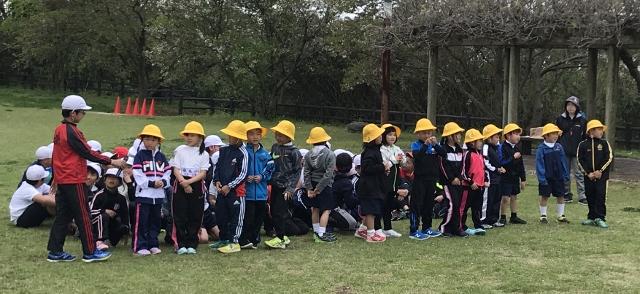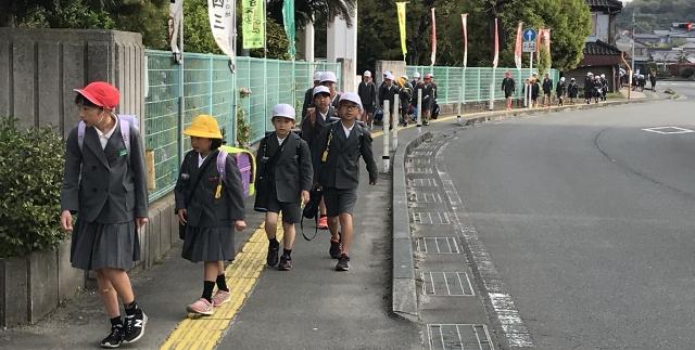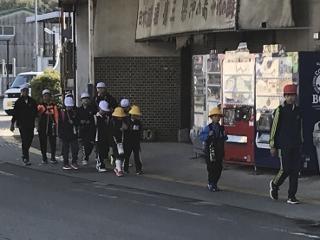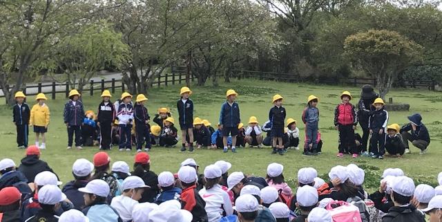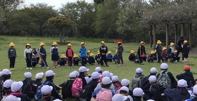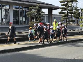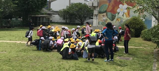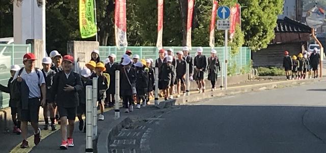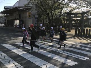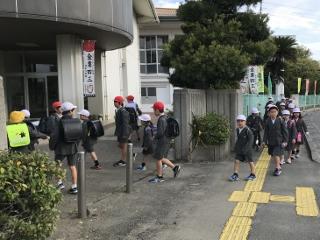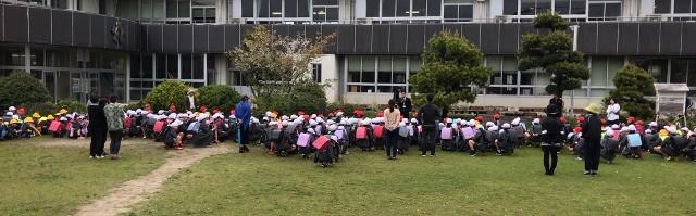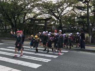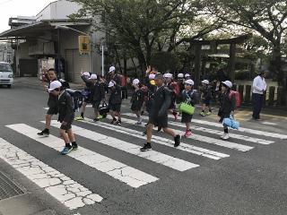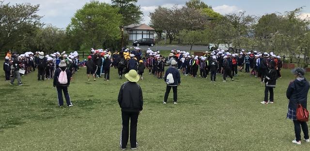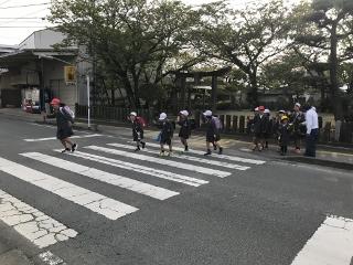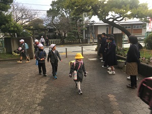 4月26日(金) 今日は連休前の最後の集団下校でした。1・2年生が集合している様子です。