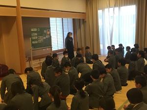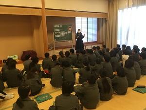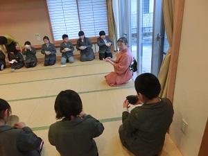 4年生の授業の様子(1月18日) 茶道の歴史や座り方などを学んでいます。