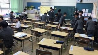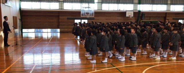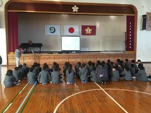 5校時に、月初め集会を行いました。私からは、新年に当たり、目標をもってほしいと話しました。その目標に向かって、一生懸命に頑張って、力を伸ばしてほしいと思います。